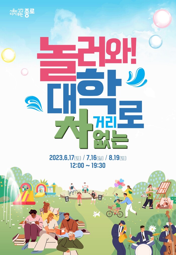 구는 민선8기 역점사업 일환으로 종로 문화관광벨트를 구축하고 보행 관광 활성화를 위해 ‘놀러와! 대학로, 차 없는 거리로’ 행사를 개최해 관광객, 지역민, 지역내 대학생 등의 참여를 유도할 계획이라고 14일 밝혔다.