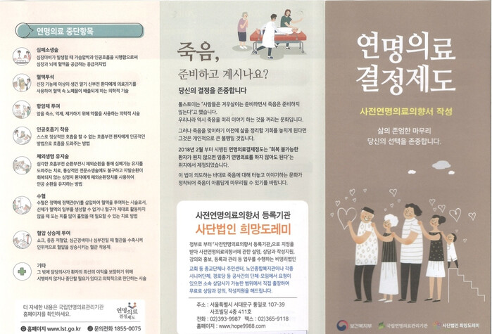 이번 활동은 보건복지부 지정 ‘사전연명의료의향서’ 등록기관인 사단법인 희망도레미가 주관하며, 전문 상담가가 상주해 주민들이 상담을 받고 의향서를 작성할 수 있도록 도울 예정이다.
