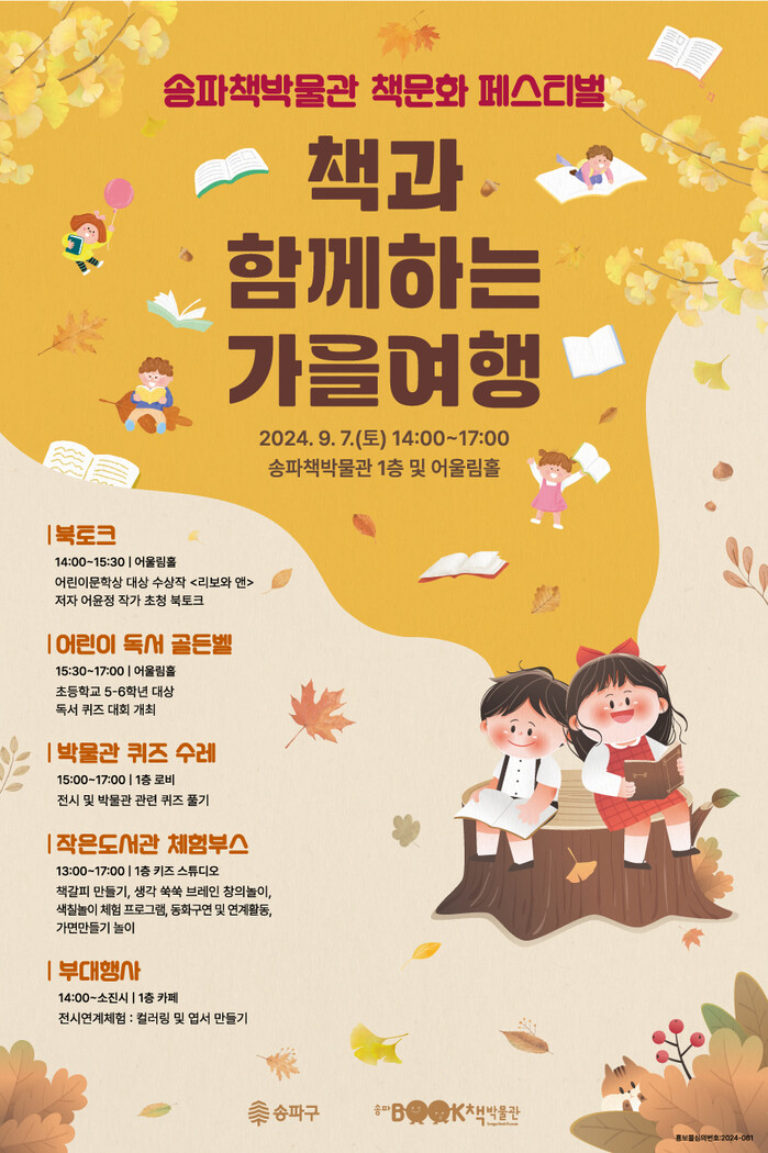 [시민일보 = 이대우 기자] 서울 송파구(구청장 서강석)가 독서의 계절을 맞아 7일 송파책박물관에서 ‘책문화 페스티벌’을 개최한다.