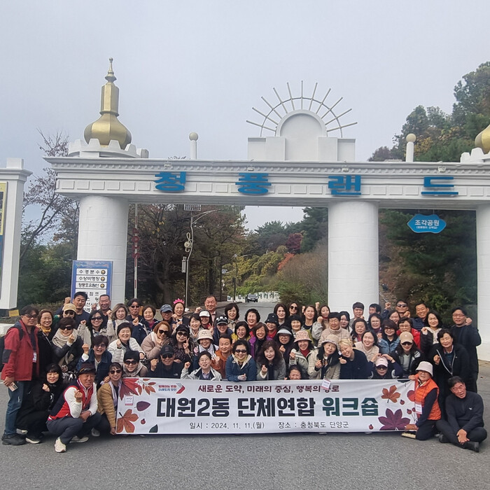 경기 오산시 대원2동이 최근 동 단체간의 화합과 발전을 위한 ‘2024년 대원2동 단체연합 워크숍’을 충북 단양에서 실시했다. 워크숍에는 주민자치회, 통장협의회, 새마을지도자협의회 등 총 6개 단체 70여명이 참여했다. 사진은 워크숍 관계자들이 기념 촬영하는 모습. (사진=오산시청 제공)