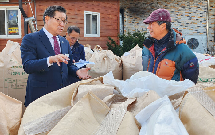 이날 서상면 매입 현장을 방문한 진병영 함양군수는 전년 대비 30% 감소한 공공비축 매입 물량과 기후변화 등 영농환경 변화에 대한 출하 농가들의 어려움을 공감하는 시간을 가졌다.