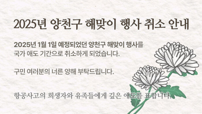 | ▲ 2025년 양천구 해맞이 행사 취소 안내문. (사진=양천구청 제공) |