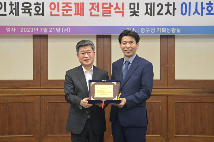 [시민일보 = 여영준 기자] 서울 중구(구청장 김길성) 장애인체육회가 최근 인준패 전달식을 개최하고 공식 활동을 시작했다.