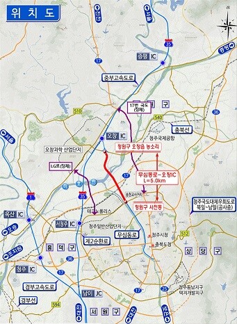 이 사업은 총사업비 1,055억원(국비 568, 도비 231, 시비 256)을 투입해 청주 사천동 송천교부터 오창읍 농소리 오창IC 5.02㎞를 왕복 4차로의 도로로 연결하는 것이다.