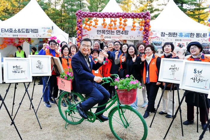 서울 중랑구가 지난 11~12일 이틀에 걸쳐 열린 ‘주민자치 어울림 성과공유회’를 성황리에 종료했다. 이번 행사에는 중랑구의 16개 동 주민자치회가 모두 참여했다. 사진은 행사에 참석한 류경기 구청장과 구민들이 기념촬영을 하고 있는 모습. (사진=중랑구청 제공)
