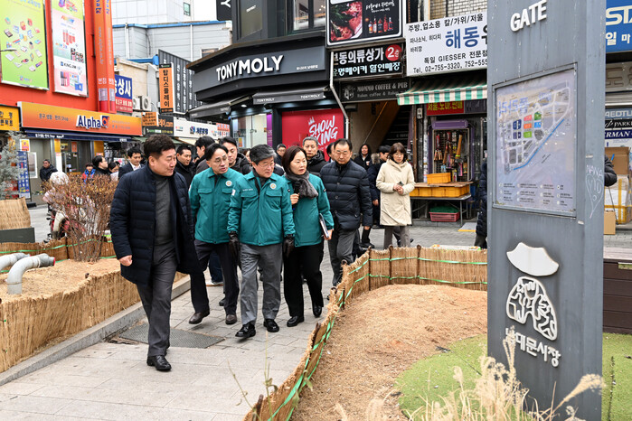 이어 김 구청장은 시장 내 135m 구간에 설치 중인 아케이드 공사 현장을 점검했다. 김 구청장은 “아케이드 설치로 시장을 이용하는 방문객들이 편리하고 쾌적하게 이용할 수 있을 것”이라며, 6월 준공까지 공사가 안전하고 차질 없이 진행되도록 세심한 관리와 협조를 당부했다.