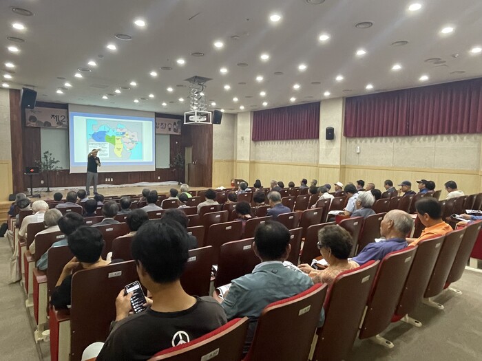 이번 강좌는 제2회 합천박물관 여름역사강좌 ‘지중해의 역사’ 중 2주차로 수강생 60여명이 참석한 가운데 이스라엘-하마스전쟁의 배경과 전망을 설명했다.