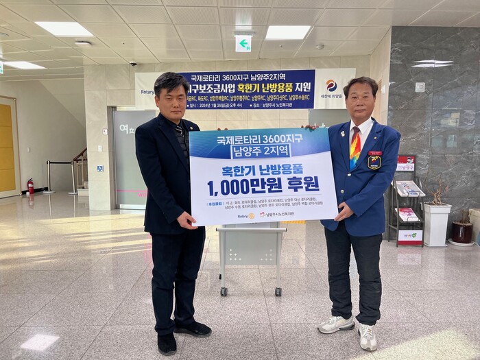 [남양주=손우정 기자] 국제로타리 3600지구 남양주2지역이 설 명절을 앞두고 최근 저소득계층 노인들을 위해 1000만원 상당의 난방용품을 남양주시노인복지관에 전달했다.
