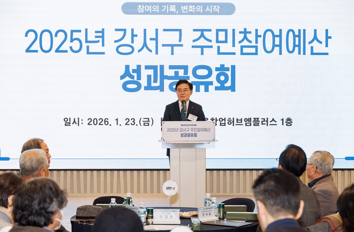 [시민일보 = 박소진 기자] 강서구(구청장 진교훈)는 지난 23일 서울창업허브 엠플러스(마곡중앙8로 14)에서 주민참여예산위원회 및 각 동 주민자치회장 50여명이 참석한 가운데 ‘2025년 강서구 주민참여예산 성과공유회’를 개최했다.