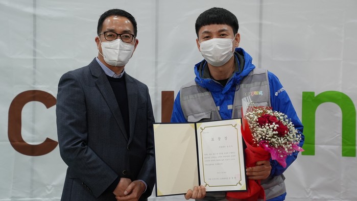 [시민일보 = 홍덕표 기자] 쿠팡은 새벽 배송 중 위험에 처한 시민을 발견해 큰 사고를 막은 쿠팡친구 송진욱씨에게 지난달 30일 표창장과 상금을 수여했다고 밝혔다.
