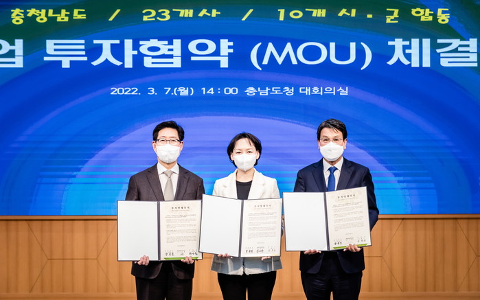 이날 김돈곤 군수는 충남도청에서 열린 ‘충청남도와 10개 시·군, 23개 기업 합동 투자협약(MOU)’ 체결식에 참석해 투자협약서에 서명했다.