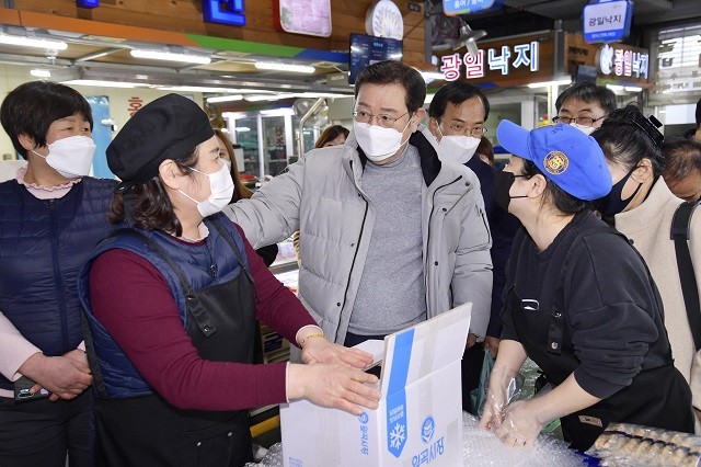 먼저, 이 시장은 광산구에 위치한 월곡시장을 방문해 코로나19 확산과 한파 등으로 힘들어하는 상인들을 격려하고 생필품 구입을 통해 새해 물가를 살피는 등 현장의 목소리를 들었다.