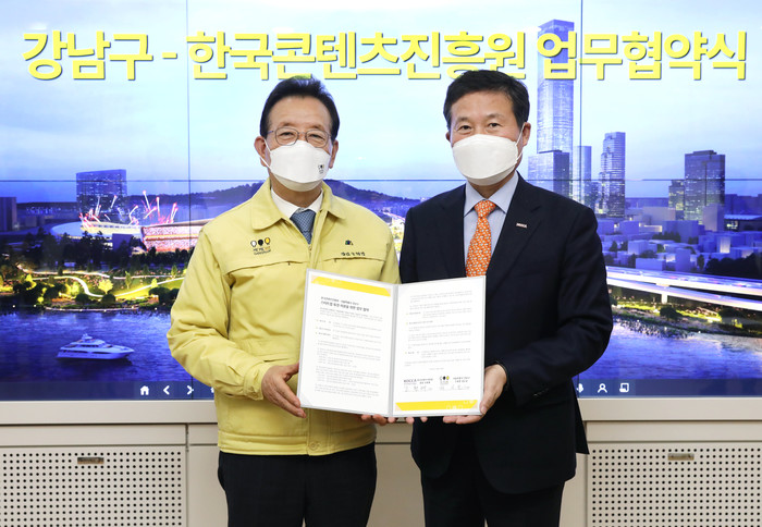 [시민일보 = 이대우 기자] 강남구(구청장 정순균)가 실감콘텐츠 분야 유망 스타트업 발굴 및 지원을 위해 한국콘텐츠진흥원 최근 업무협약을 체결하고, 오는 2022년 3월 개관하는 ‘강남 취·창업허브센터’ 4~5층(연면적 557㎡)을 실감콘텐츠 집중 육성공간으로 운영한다.