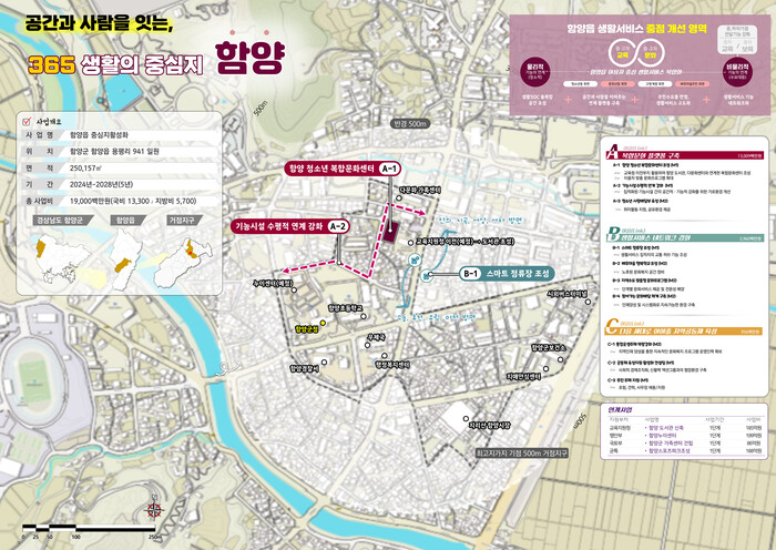 특히 함양읍 핵심사업인 청소년 복합문화센터 조성은 교육청의 학생복합도서관 건립과 연계추진되어, 취약한 문화·교육 서비스를 대폭 개선할 것으로 기대된다.