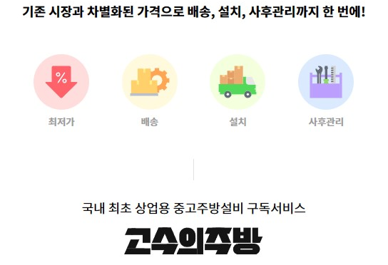 기존 중고 주방설비 거래 시장은 레몬마켓(정보 비대칭)을 통한 발품과 경제적비용이 발생되었다면 고수의주방은 차별화된 가격으로 배송, 설치, 상담, 케어, 애프터서비스가 전부 갖춰져있는 통합 브랜드를 선보인다.