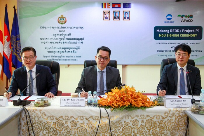 우리은행은 지난 16일, 캄보디아 산림청, 아시아산림협력기구(Asian Forest Cooperation Organization)와 캄보디아 수도 프놈펜에서 다자간 업무협약을 체결, 앞으로 30년간 캄보디아 산림 생태계 보존과 온실가스 감축을 위한 ESG 산림경영에 적극 참여하기로 했다.