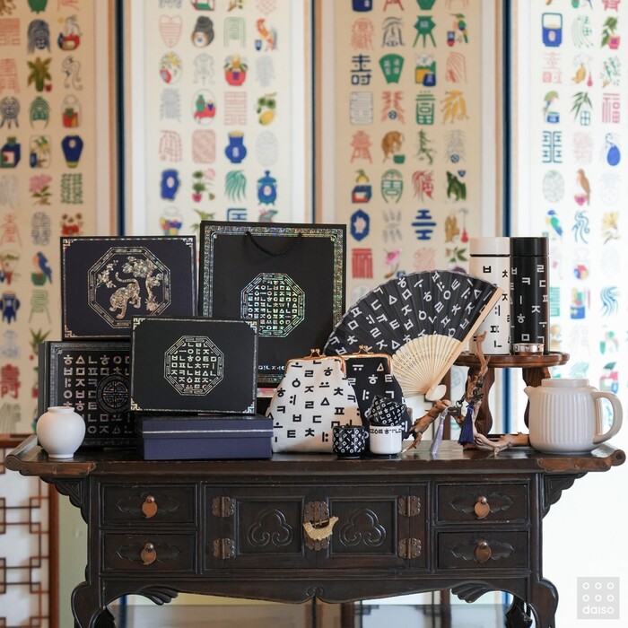 아성다이소에 따르면 이번 시리즈는 ‘훈민정음’의 자음, 모음과 꽃, 새, 범(호랑이) 소재의 ‘민화’를 컨셉으로 기획해, 기념품으로 선물하거나 색다른 디자인을 포인트로 활용하기 좋은 상품으로 구성했다. 전통소품, 팬시용품, 포장용품 등 약 40종의 상품을 선보인다.