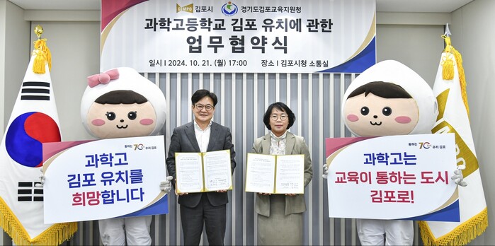 시는 21일 김포교육지원청과 ‘과학고 유치 추진을 위한 업무협약’을 체결하고, 양 기관의 긴밀한 협력체계 구축을 통해 과학고 김포 유치에 힘을 모으기로 했다.