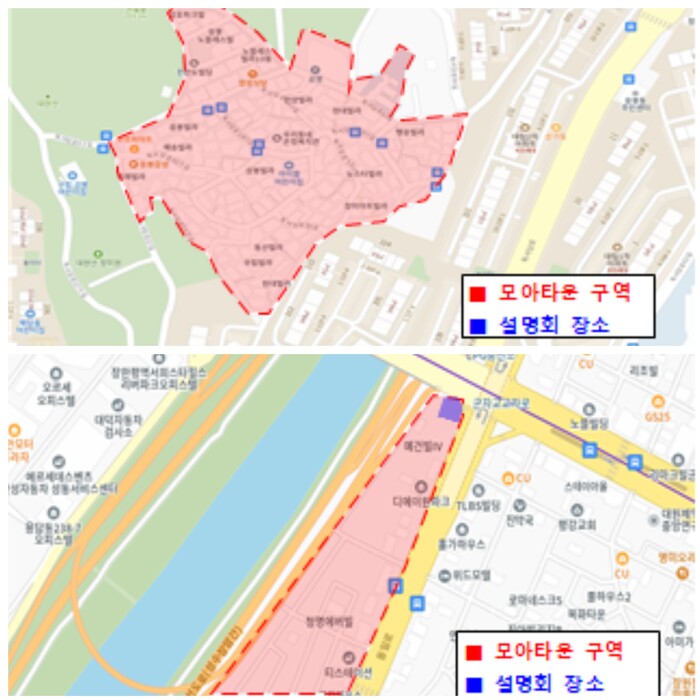 8일 구에 따르면 응봉동 265번지 일대는 2022년 10월, 송정동 97-3 일대는 2023년 8월에 각각 서울시 모아타운 대상지에 선정되어 현재 관리계획 수립을 진행 중에 있다.