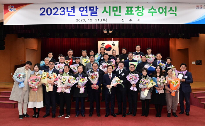 진주시는 21일 시청 시민홀에서 한해를 마무리하며 시정발전을 위해 기여한 각계 각층의 유공자 및 가족 등 200여 명이 참석한 가운데 ‘연말 시민 표창식’을 가졌다.