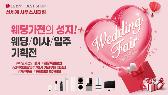 이번 행사는 '웨딩가전의 성지'로 알려진 LG전자 베스트샵 신세계 사우스시티점에서 결혼을 앞둔 예비부부와 신규 아파트 입주 및 이사를 준비하는 고객들에게 특별 혜택을 제공하는 데 중점을 두고 실시된다.
