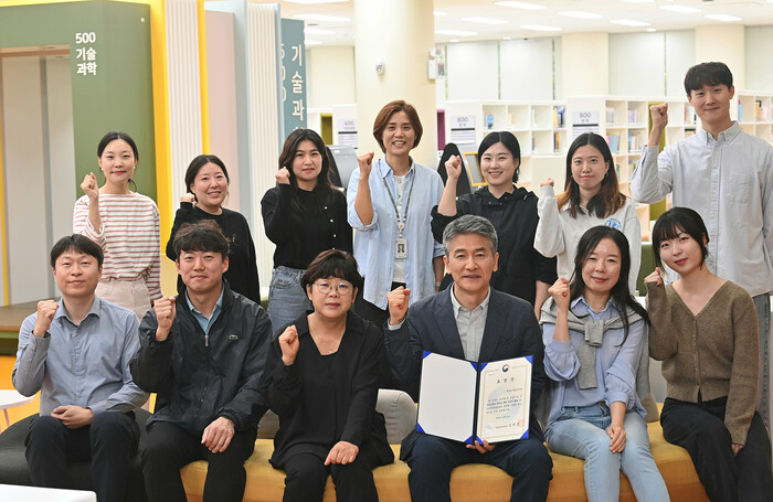 | ▲ 하남시립도서관 관계자들이 국립중앙도서관장상 수상 기념 촬영을 하고 있다. (사진=하남시청 제공) |