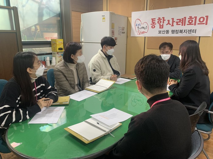 경기 동두천시 보산동행정복지센터는 최근 내부사례회의를 개최해 방문상담을 통해 발굴된 위기가구의 복지욕구를 파악하고 서비스 지원 방안 모색과 사례관리 개입 방향 설정에 대해 논의했다. 사진은 이날 회의가 진행되고 있는 모습. (사진제공=동두천시청)