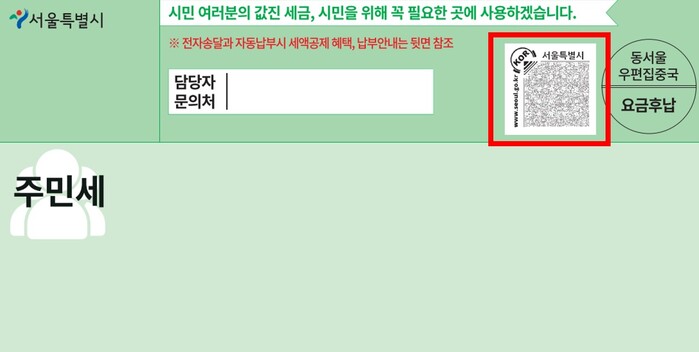 | ▲ 고지서 상단에 있는 시각장애인을 위한 ‘음성변환 바코드’ (사진=영등포구청 제공) |