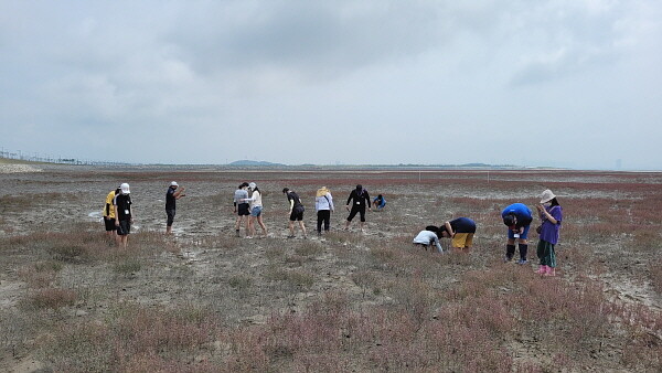 | ▲ 실험이 진행된 인천 영종 제2지구에서 갯벌체험활동을 하는 모습. 지나친 갯벌 체험이나 맨발 걷기 등으로 생긴 답압은 갯벌생물의 생태에 악영향을 미칠 수 있다. (사진제공=인하대학교) |