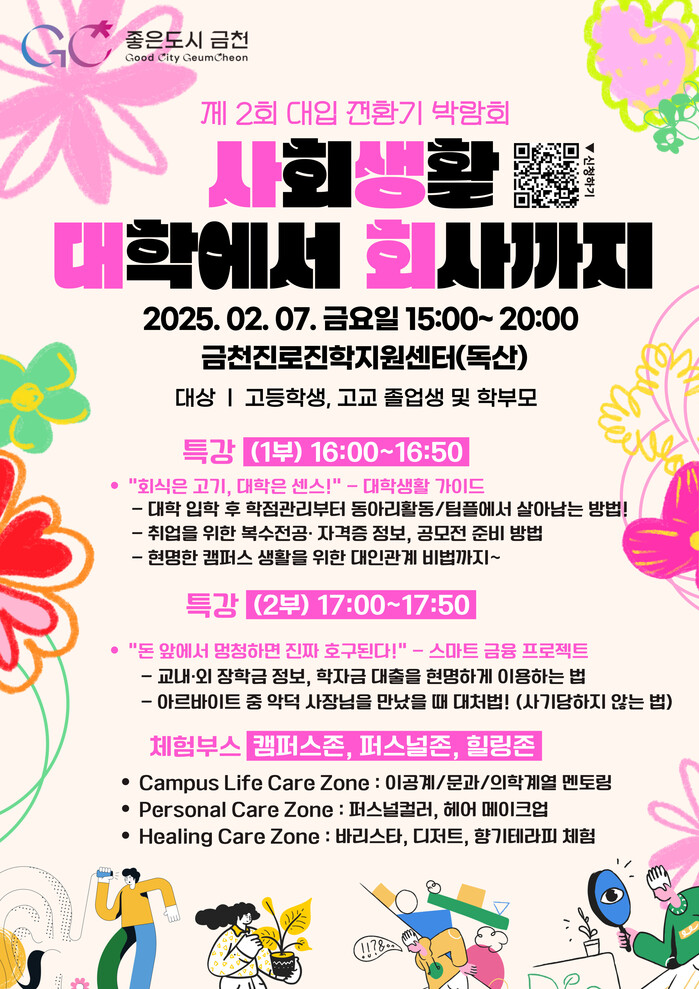 [시민일보 = 여영준 기자] 서울 금천구(구청장 유성훈)는 오는 7일 금천진로진학지원센터(독산)에서 졸업을 앞둔 고등학교 3학년 학생, 고교 졸업생과 학부모를 대상으로 ‘대입 전환기 박람회’를 연다고 4일 밝혔다.