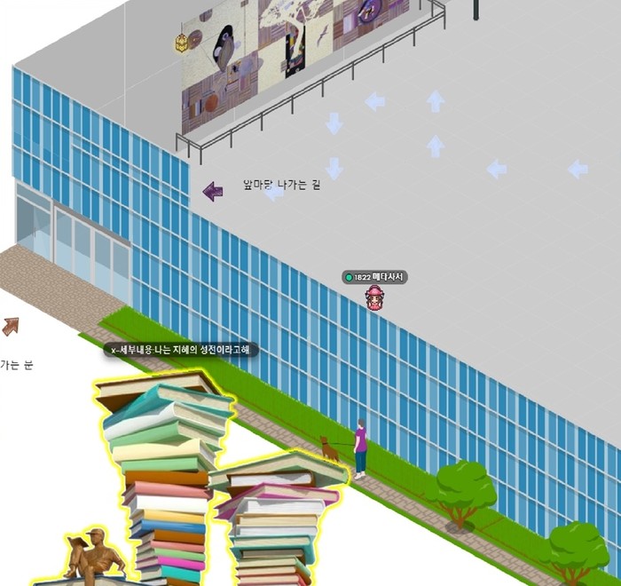 가장 먼저 게더타운(메타버스 플랫폼)을 활용해 자료열람실 현장을 중심으로 실제 도서관 모습을 그대로 담았다는 게 구의 설명이다.