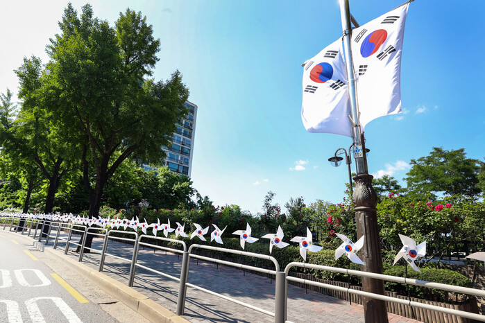 | ▲ 동작구(구청장 박일하)는 6월 호국보훈의 달을 맞아 흑석동 현충로 일대에 바람개비 태극기 거리를 조성했다. (사진=동작구청 제공) |