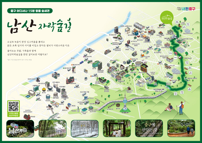 [시민일보 = 여영준 기자] 중구는 구민 정책 만족도 1위에 빛나는‘남산자락숲길’을 누구나 손쉽게 찾고 즐길 수 있도록 중구 전역 총 51개 코스를 담은 안내지도 ‘남산이음’을 제작했다고 7일 밝혔다.