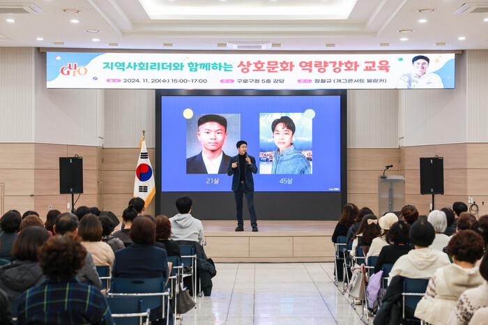 교육에는 지역사회 리더(통장, 주민자치위원, 지역사회보장협의체 위원 등)와 구로구 소속 공무원 등 약 300명이 참석해 다문화 이해 교육 전문 강사이자 개그맨으로 활동 중인 정철규 강사의 문화 다양성과 상호문화주의 관련 특강을 수강했다.