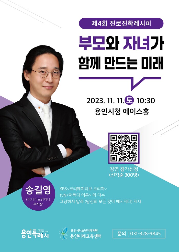 한편, 용인미래교육센터에서는 급변하는 시대흐름을 반영한 진로정보와 강연을 제공하고 있으며 사전신청을 통해 관심있는 누구나 무료로 참여할 수 있다.