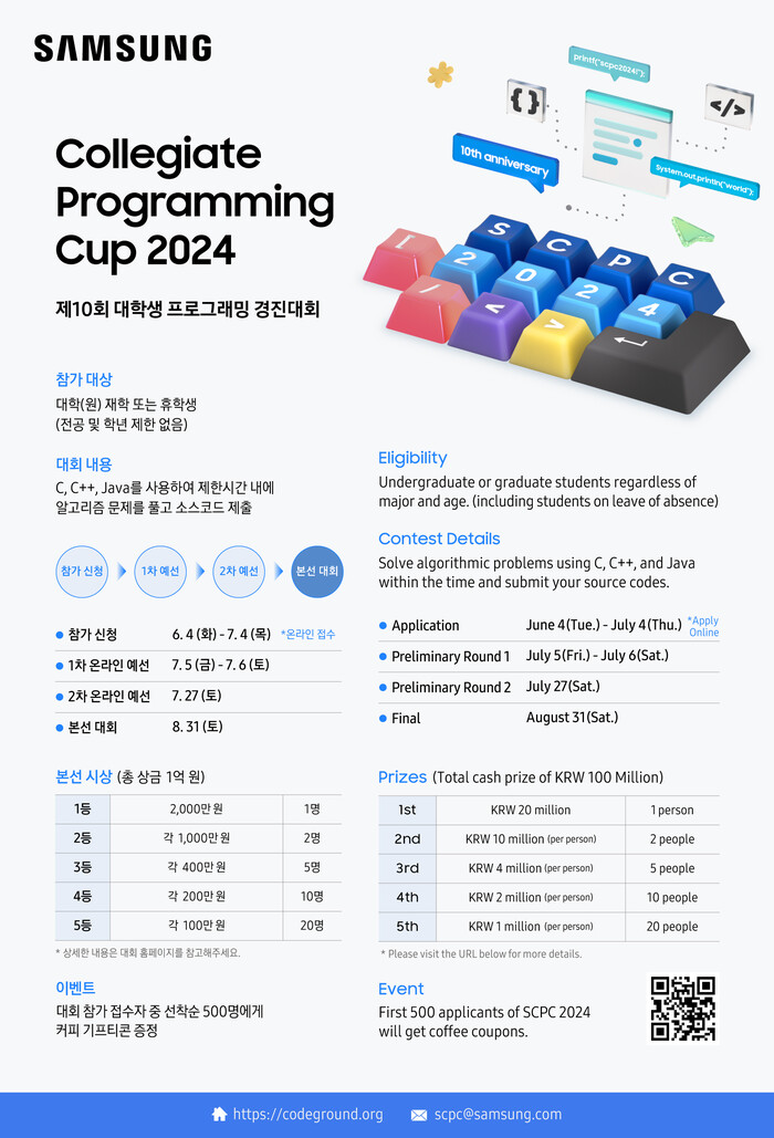 | ▲ 삼성전자 대학생 프로그래밍 경진대회 'SCPC 2024' 포스터 (사진=삼성전자 제공) |