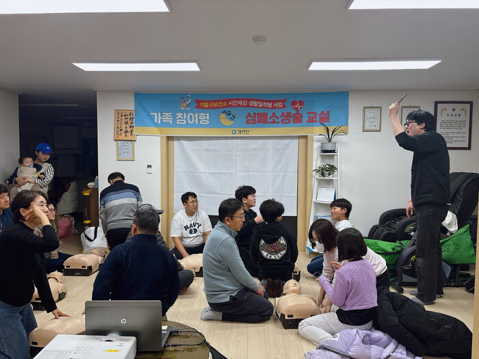 [용인=오왕석 기자] 용인특례시(시장 이상일) 기흥구보건소는 가정 내 심정지 사고 등에 대비해 응급상황 대처 능력을 키울 수 있도록 지역 아파트 입주민을 대상으로 야간 심폐소생술 교육을 실시했다고 13일 밝혔다.