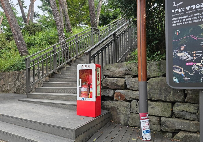 | ▲ 소화기 설치사진(아차산 동행숲길 입구). (사진=광진구청 제공) |