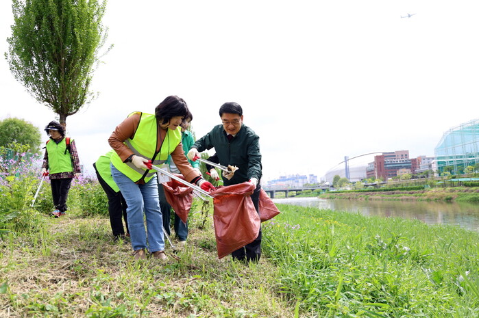 [시민일보 = 이대우 기자] 서울 구로구(문헌일 구청장)가 안양천에서 탄소중립 시민실천단과 함께 하천 정화 활동을 펼쳤다.