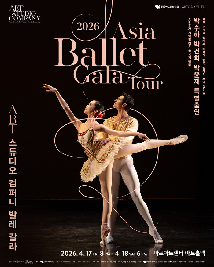 [시민일보 = 문민호 기자] 마포문화재단(대표이사 고영근)은 오는 4월 17(금), 18일(토) 양일 간 마포아트센터 아트홀맥에서 를 개최한다. 세계 최정상 발레단 아메리칸 발레 시어터(American Ballet Theatre, 이하 ABT) 산하의 무용수 육성단체인 ABT 스튜디오 컴퍼니가 국내 무대에 서는 것은 이번이 처음으로, 세계 발레의 미래를 이끌 젊은 무용수들의 기량을 한자리에서 확인할 수 있는 뜻깊은 무대가 될 전망이다.