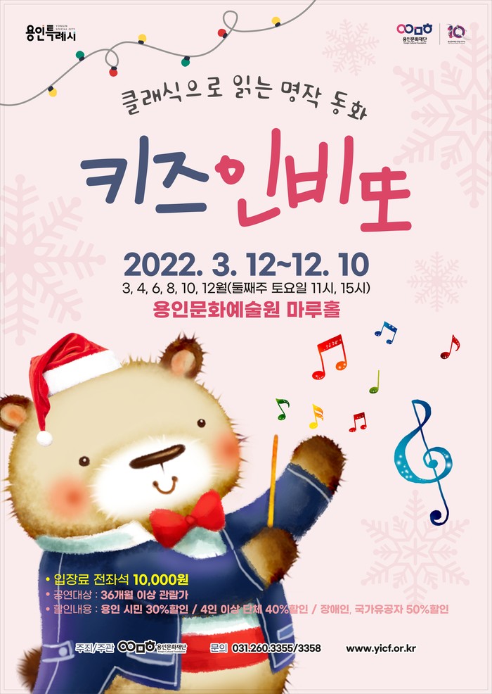 [용인=오왕석 기자] 용인문화재단(이사장 이상일)은 ‘키즈 인비또’ 12월 공연의 티켓을 오는 10일 오후 2시에 오픈한다고 밝혔다.