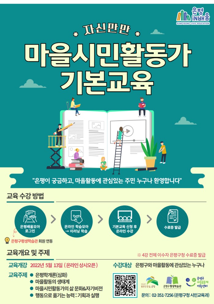 [시민일보 = 이대우 기자]서울 은평구는 최근 은평배움모아를 통해 ‘2022. 자신만만, 마을시민활동가 교육’ 이러닝 과정을 공개했다.