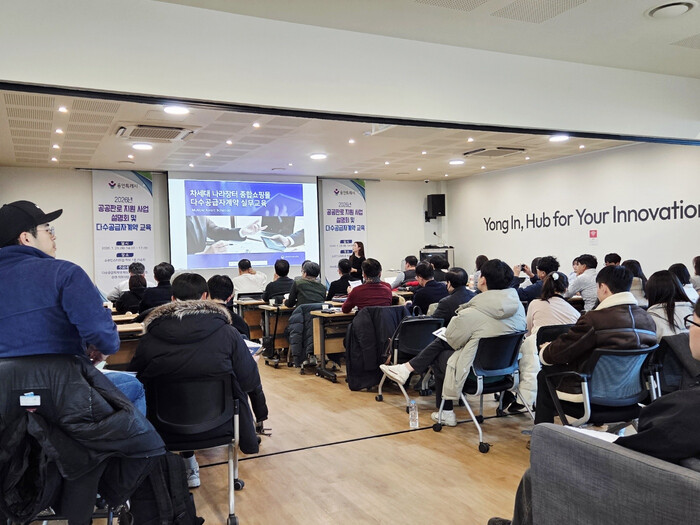 [용인=오왕석 기자] 용인시산업진흥원(이사장 이상일)이 29일 ‘소공인‧스타트업 허브’ 라운지에서 용인 소재 중소기업 관계자 총 52명이 참석한 가운데 '2026년 공공판로 지원사업 설명회 및 교육’을 개최했다고 밝혔다.