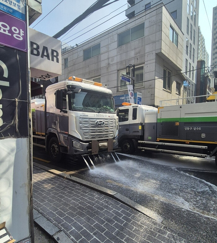 | ▲ 성수2가제3동에서 봄맞이 물청소하는 모습. (사진=성동구청 제공) |