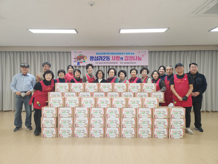 서울 성동구 왕십리제2동 지역사회보장협의체에서 최근 지역내 저소득 홀몸노인을 위한 '사랑의 김장 나눔' 행사를 개최했다. 사진은 김장 나눔 행사 관계자들이 기념 촬영하는 모습. (사진=성동구청 제공)