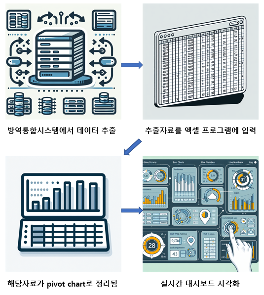 감염병 발생 현황 관리시스템은 VBA(Visual Basic or Applications) 매크로 코딩을 통해 엑셀 데이터 처리 업무를 자동화하는 것을 기반으로 실시간 감염병 발생 현황을 직원들이 직관적으로 파악하고 신속히 대응할 수 있다는 장점을 가지고 있다.