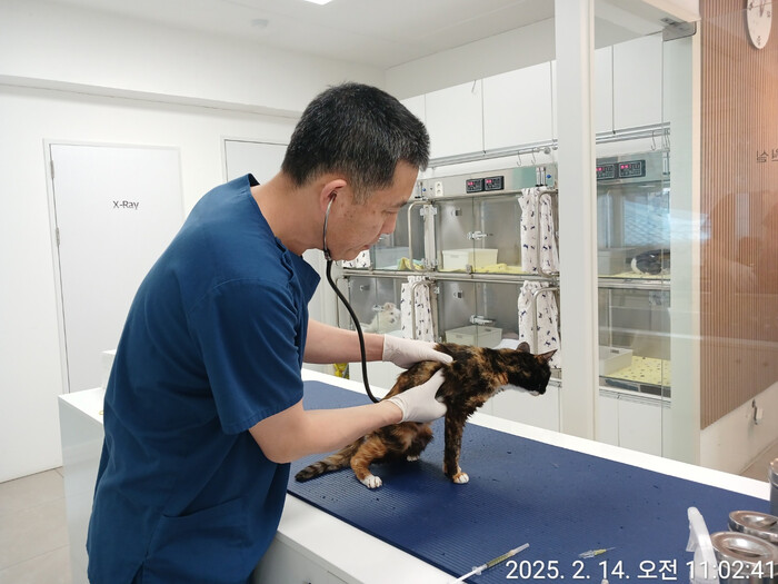 | ▲ 협약 동물병원에서 중성화수술 전 길고양이 몸 상태를 살펴보고 있다. (사진=구로구청 제공) |