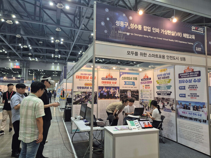 [시민일보 = 박소진 기자] 성동구(구청장 정원오)는 17일부터 19일까지 경기도 고양 킨텍스에서 열린 ‘2025 대한민국 안전산업박람회(K-SAFETY EXPO 2025)’에 참가해 전국 최초 성수역·연무장길·앤더슨씨 등 지역 주요 일상공간을 배경으로 한 ‘VR(가상현실) 인파위기관리 체험교육’ 프로그램을 선보이며 큰 주목을 받았다고 밝혔다.