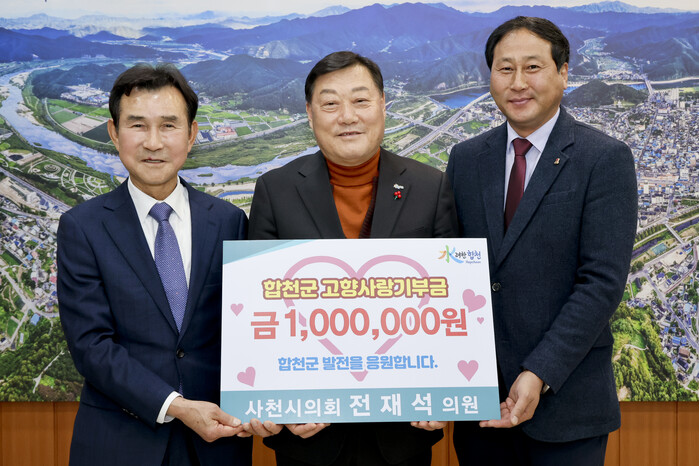합천군 고향사랑기부제 2,400호의 주인공은 사천시의회 전재석 의원이다. 전의원은 삼가면 출신으로 현재 사천시의회 건설항공위원장이다.