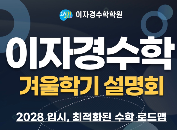 이번 겨울학기 설명회는 2028년도 입시를 위한 최적화된 수학 로드맵을 소개, 이자경수학학원의 시그니처 커리큘럼 등에 대해서 안내할 예정이며 고교학점제 및 의대 정원 확대 솔루션 및 수학 로드맵 등이 소개될 예정이다.